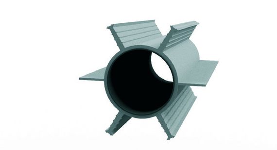 KUNEX® Sternrohre aus thermoplastischem Kunststoff (PVC-P) dienen der Erzeugung und Abdichtung von Schein- und Sollrissfugen im Beton. Sternrohre bestehen aus einem PVC Weich-Mantel mit vier Sperrankern und zwei Rissführungslippen. Zur Stabilisierung des Mantels besteht das Innenrohr des Sternrohrs aus Hart-PVC. Die beiden Rissführungslippen dienen der zielgerechten Erzeugung des Sollrisses, den die vier Sperranker gleichzeitig abdichten.