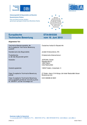 JORDAHL® - ETA 09/0338 - Ankerschiene JTA