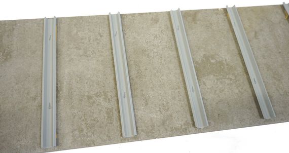 gebrachten PVC-Kopplungsprofilen. Die Rückverankerungsprofile garantieren einen sicheren Verbund im Ortbeton. Die zementgebundene Spanplatte ist CE-zertifiziert. Abschalbretter können als Deckenrandabschalung und/oder zur Fugenabdeckung bei Deckenschalungen zum Einsatz kommen. Abstand alle 15cm = 8 Stück / Element.