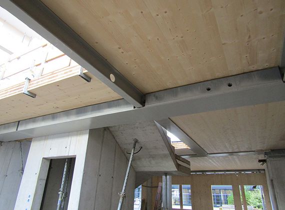 - Bei dem Projekt kamen Holzdecken zum Einsatz, die auf dem PFEIFER-Hybridträger® basierten.